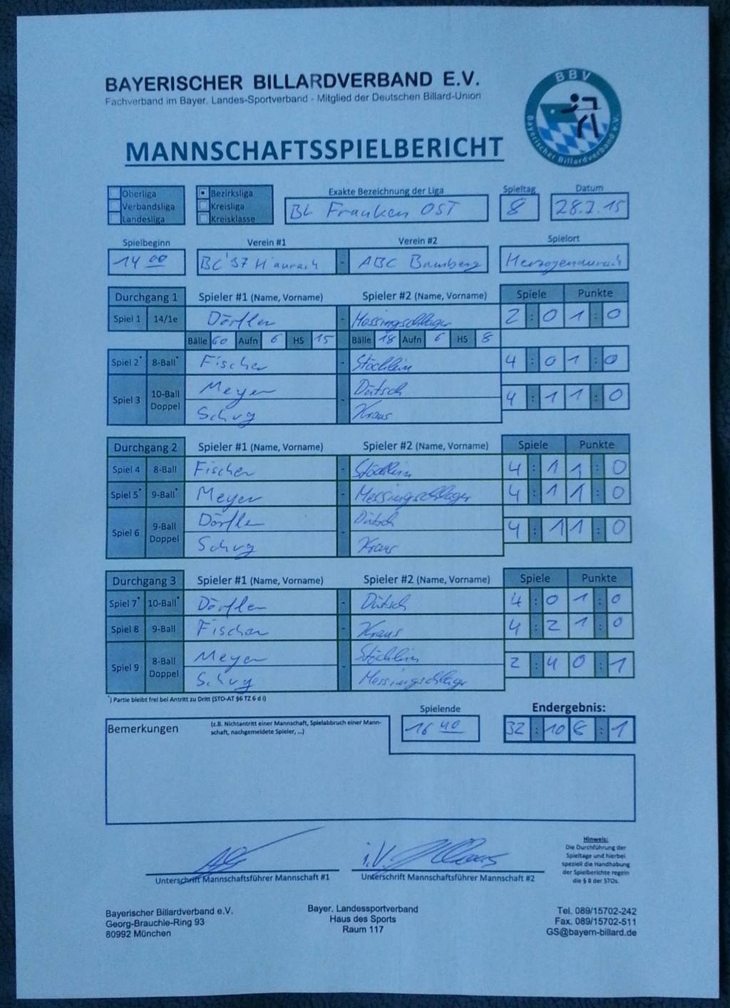 Nur noch drei Spieltage und die Saison 2014/15 ist geschafft. Am 28.02.2015 fand im heimischen Verein die Begegnung gegen die Jungs aus Bamberg statt. Es war für die Mannschaft eine gute Gelegenheit, um sich warm zu spielen, für die Partie gegen den Tabellenzweiten Bad Staffelstein.