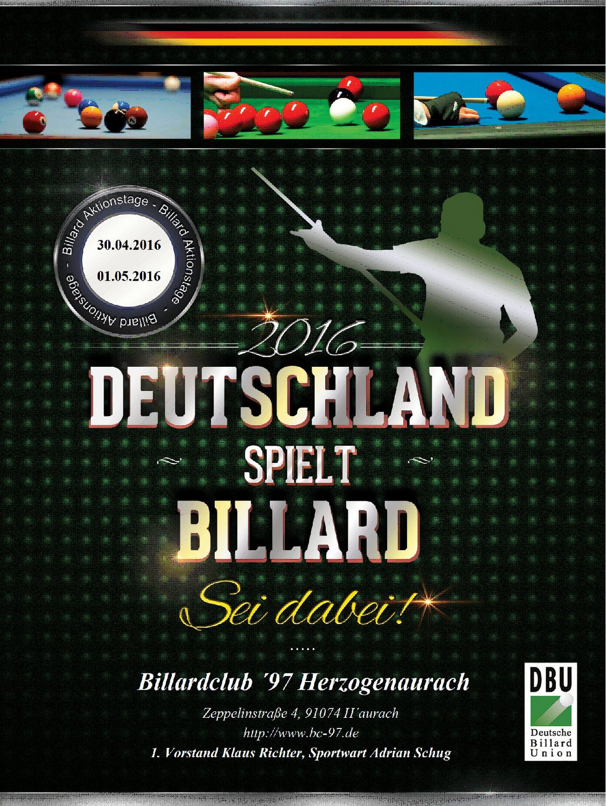 Am 30.Apirl und 1.Mai diesen Jahres öffnen wir unsere Pforten wieder für alle Interessierten an Billard und Snooker. Die Aktion ist auch zu finden auf Facebook.